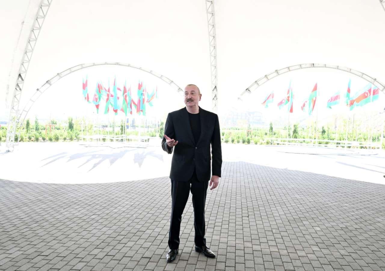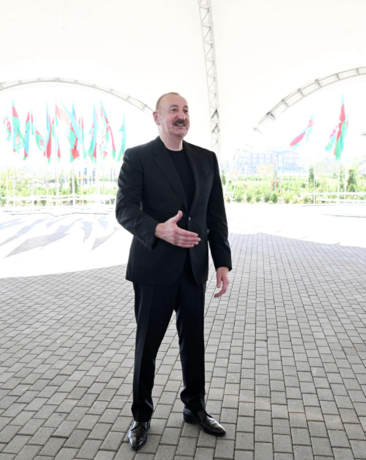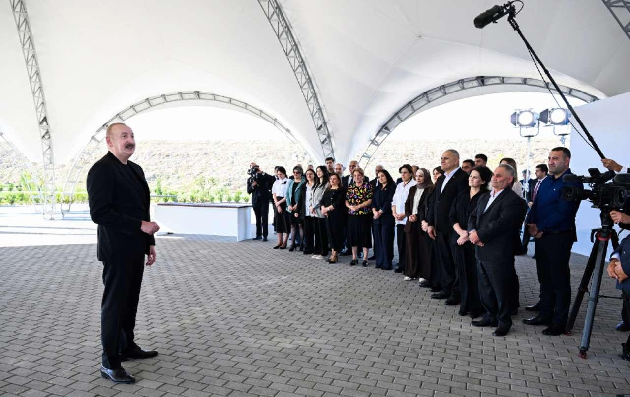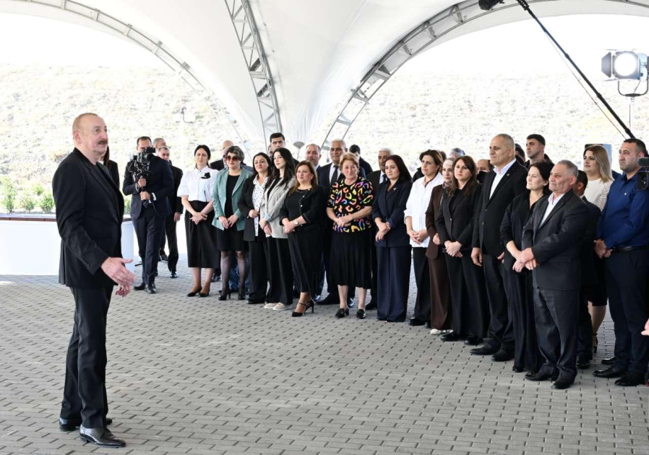 Ermənilər viran qoyub bizim dədə-baba torpaqlarımızı, biz isə qurub-yaradan xalqıq. Biz düşməni torpaqlarımızdan qovmuşuq. İndi də doğma torpağımızda qurub-yaradırıq, şərait yaradırıq, binalar, məscidlər tikirik, tarixi abidələri bərpa edirik. Yəni, biz - bu torpaqların sahibləri qayıtmışıq və burada əbədi yaşayacağıq. Mən sizə də xoşbəxt həyat arzulayıram. Bir daha sizi təbrik edirəm.