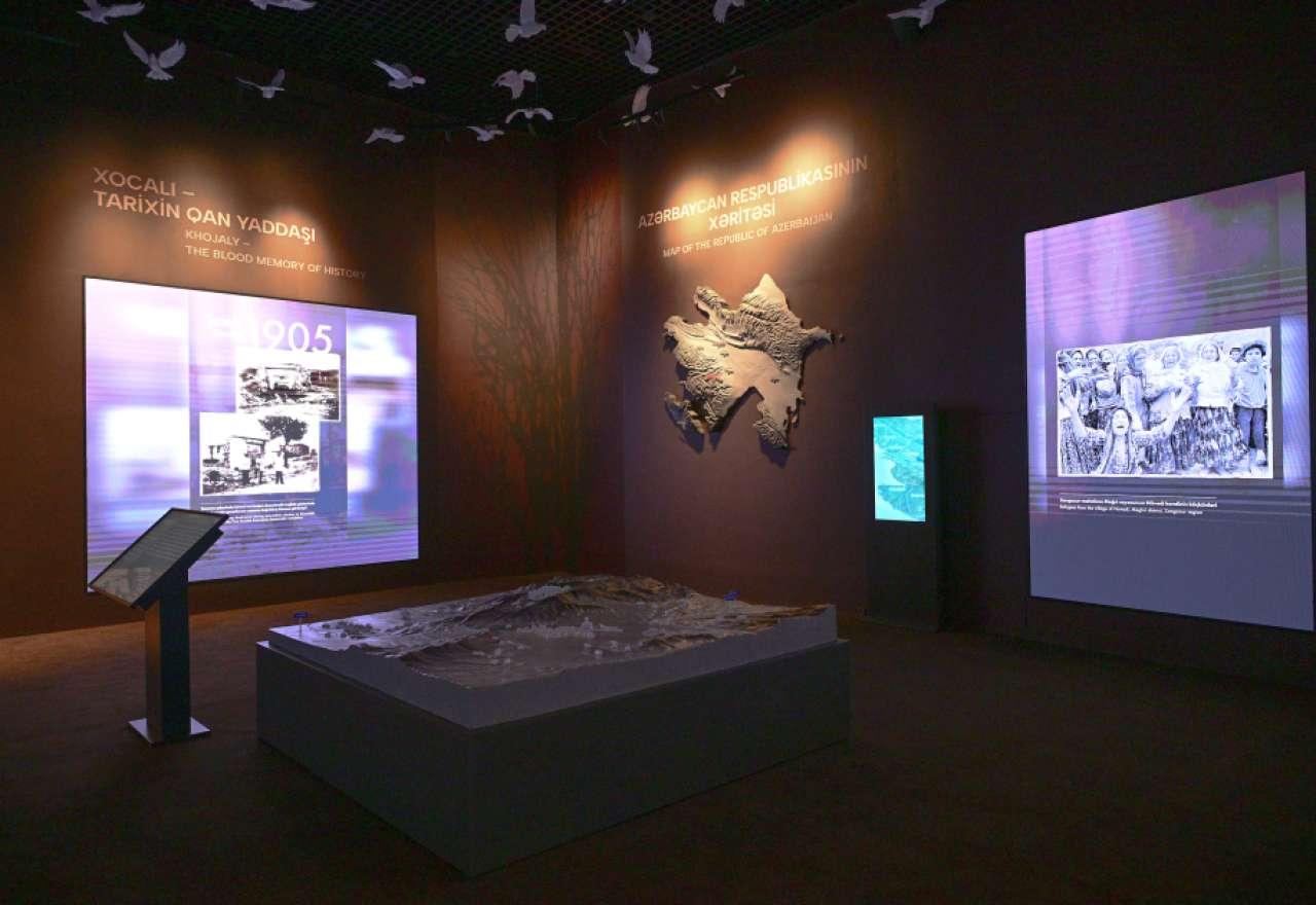 XX əsrdə insanlıq əleyhinə ən dəhşətli cinayətlərdən biri olan Xocalı soyqırımına həsr edilmiş ekspozisiyada Ermənistan-Azərbaycan münaqişəsinin tarixi kökləri, işğalçılıq siyasəti və erməni terrorizminin Azərbaycan torpaqlarında törətdiyi fəsadlar sənədlər, xəritələr və faktlar əsasında təqdim olunur. Burada “Xocalı - qədim sivilizasiyanın izləri”, “Xocalı soyqırımı bəşəriyyətə qarşı cinayətdir”, “Xocalını unutma!” adlı ekspozisiyalarda Xocalının tarixi, işğalın coğrafiyası, münaqişənin xronologiyası, beynəlxalq hüquq normalarının pozulması, bəşəriyyətə qarşı törədilmiş ən qanlı cinayətlərdən biri olan Xocalı soyqırımı barədə məlumatlar və Ümummilli Lider Heydər Əliyevin soyqırımına verdiyi siyasi-hüquqi qiymət nümayiş olunur.